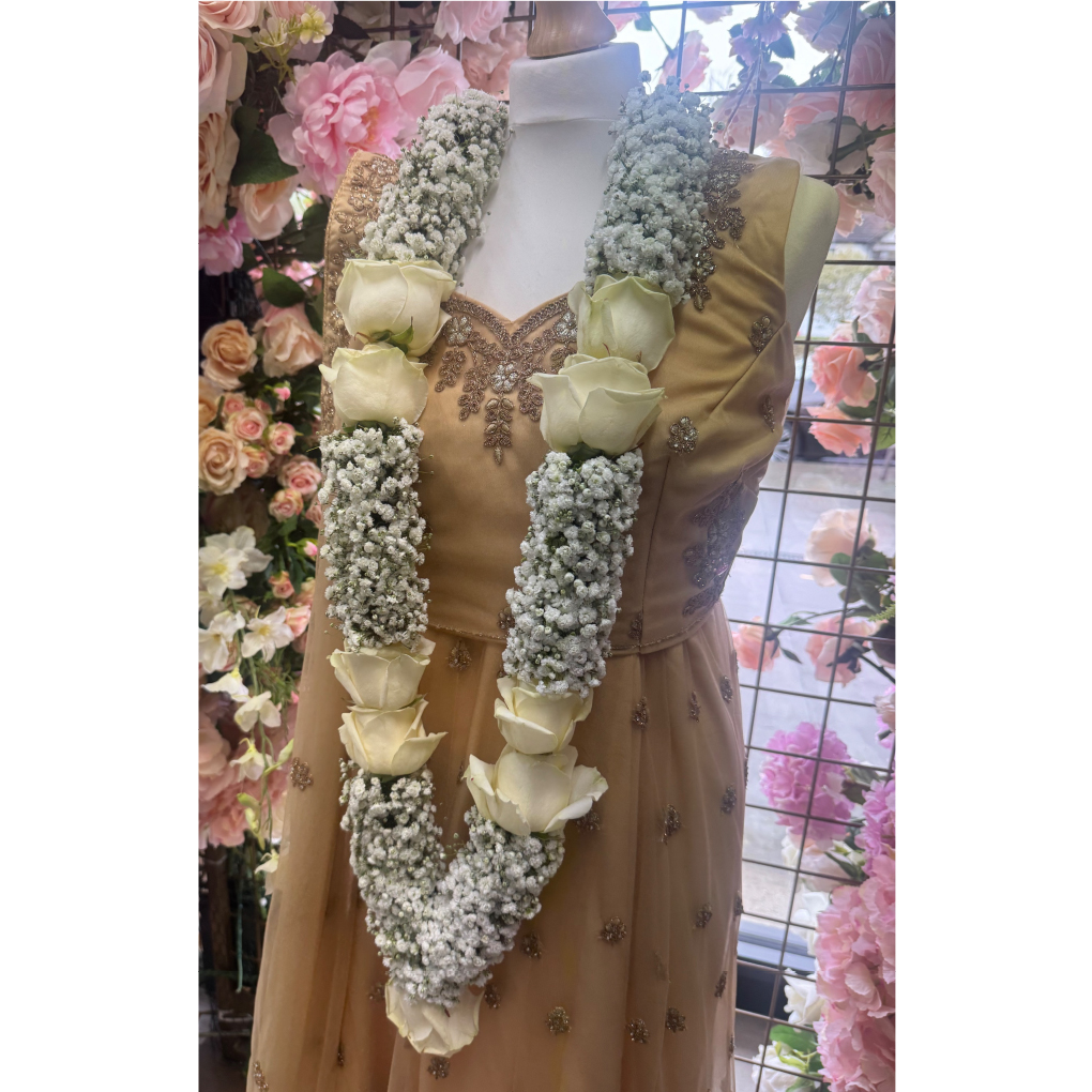 Elevate your special moments with this elegant floral garland, handcrafted with delicate white Gypsophila (Baby’s Breath) and white roses. Perfectly designed for weddings, this garland also adds a touch of grace to engagements, anniversaries, and other cherished celebrations. Soft, romantic tones and premium blooms make it an ideal accessory for timeless beauty and elegance.